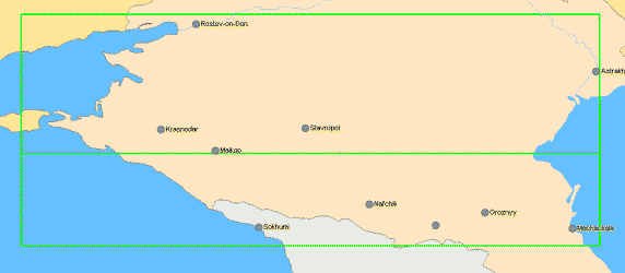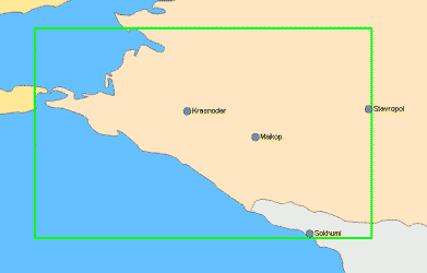 | Покрытие: фрагментарно горная часть Кавказа (все горы Краснодарского края и Адыгеи, Загедан, Архыз, Домбай, Приэльбрусье). | Фрагмент (щелкните для увеличения):![]() |